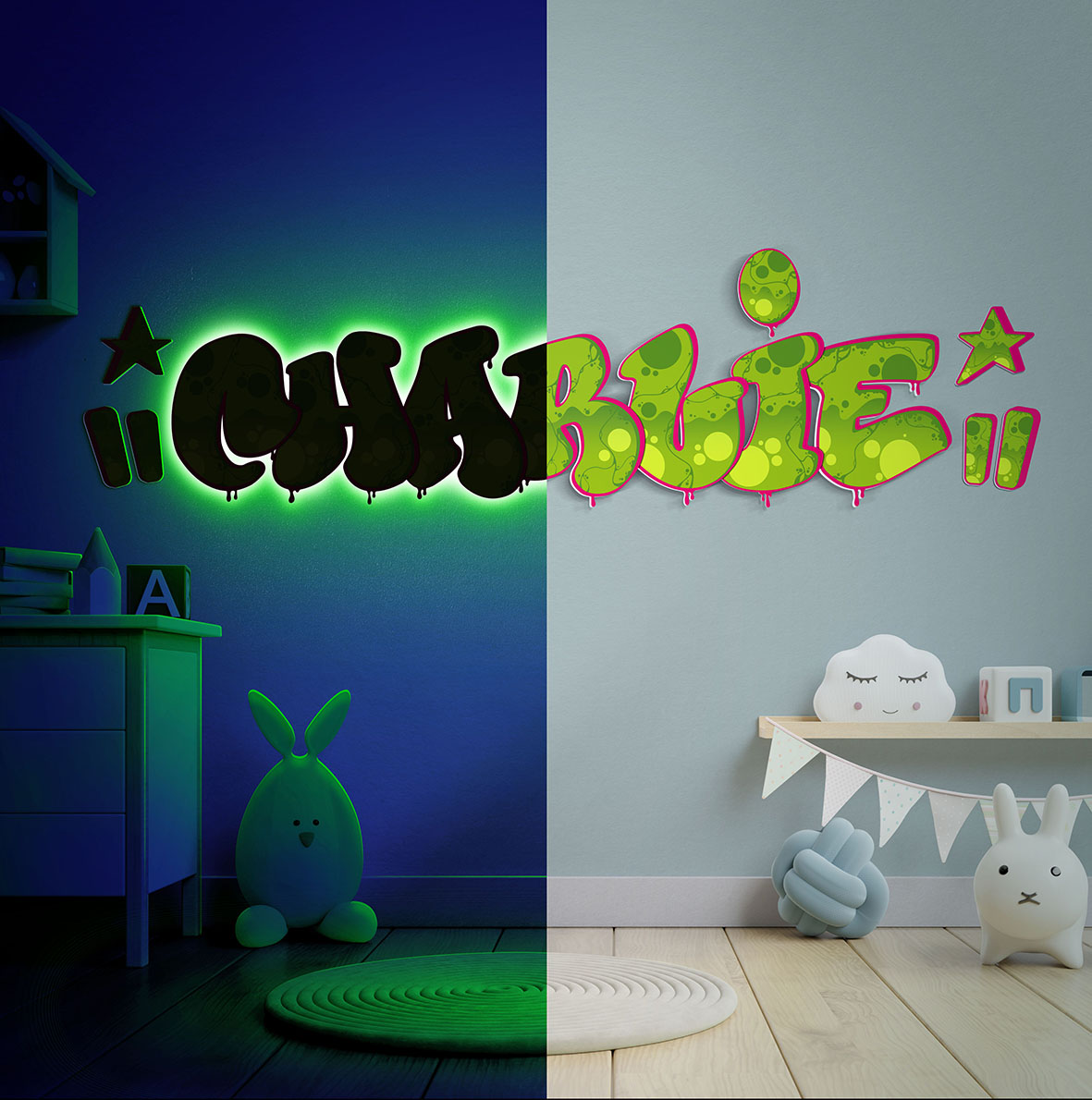 Et là, toi, t'as ton prénom, en graff, en grand, illuminé, dans ta chambre. Bonne idée, non?